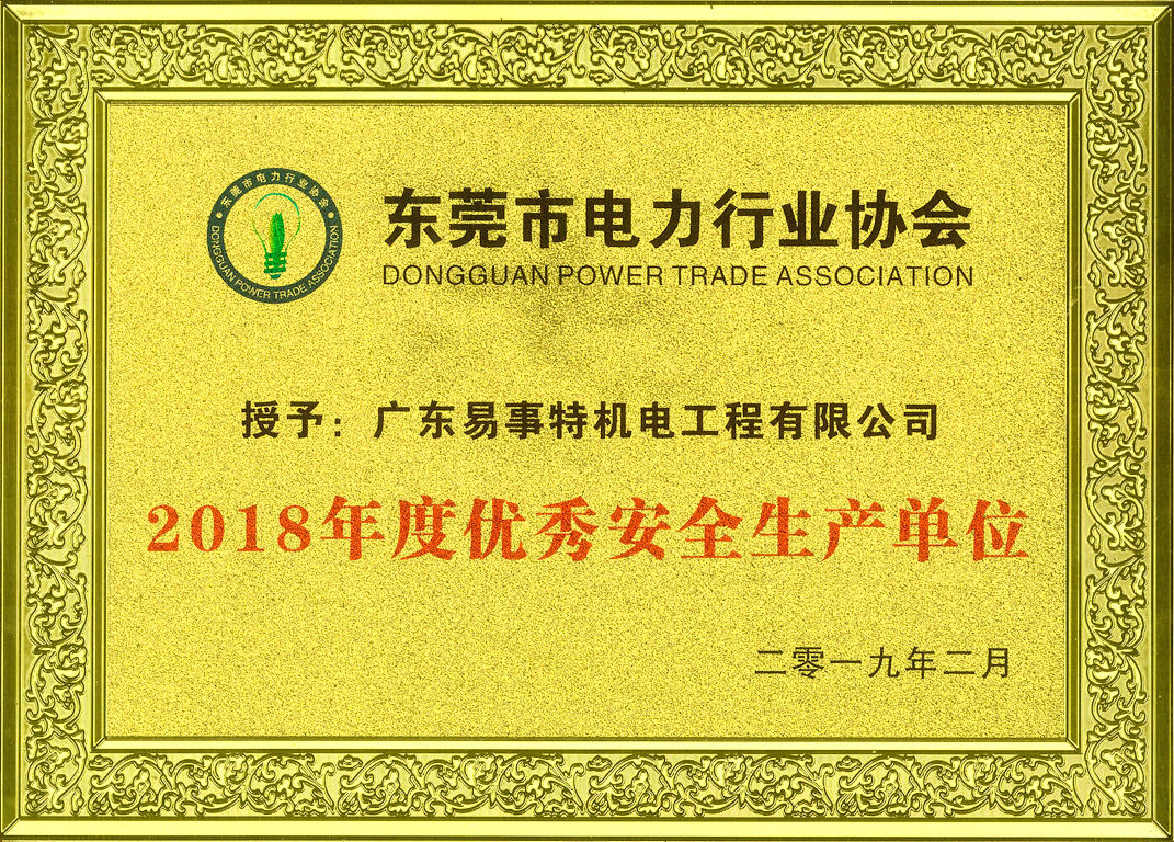 廣東易事特機電工程有限公司在此次評選活動中榮獲“2018年度優秀會員單位”、“2018年度優秀安全生產單位”和“2018年度優秀品牌建設單位”稱號。